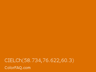 CIELCh 58.734,76.622,60.3 Color is a normal orange color and the nearest color is Mango Tango Crayola #e77200. Hex code #dd6f00 and RGB value is rgb(221,111,0). In RGB color space, this color is composed of 87% red, 44% green, 0% blue, In CMYK color space, this color is composed of 0% cyan, 50% magenta, 100% yellow , 13% black , In HSL color space, this color has a hue angle of 30° , 100% saturation and 43% lightness.