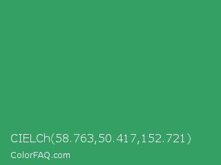 CIELCh 58.763,50.417,152.721 Color is a normal green color and the nearest color is Chateau Green #40a860. Hex code #34a063 and RGB value is rgb(52,160,99). In RGB color space, this color is composed of 20% red, 63% green, 39% blue, In CMYK color space, this color is composed of 68% cyan, 0% magenta, 38% yellow , 37% black , In HSL color space, this color has a hue angle of 146° , 51% saturation and 42% lightness.