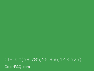 CIELCh 58.785,56.856,143.525 Color is a normal green color and the nearest color is Chateau Green #40a860. Hex code #40a04f and RGB value is rgb(64,160,79). In RGB color space, this color is composed of 25% red, 63% green, 31% blue, In CMYK color space, this color is composed of 60% cyan, 0% magenta, 51% yellow , 37% black , In HSL color space, this color has a hue angle of 129° , 43% saturation and 44% lightness.