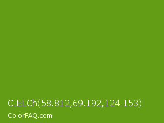 CIELCh 58.812,69.192,124.153 Color is a normal green color and the nearest color is Christi #67a712. Hex code #639d16 and RGB value is rgb(99,157,22). In RGB color space, this color is composed of 39% red, 62% green, 9% blue, In CMYK color space, this color is composed of 37% cyan, 0% magenta, 86% yellow , 38% black , In HSL color space, this color has a hue angle of 86° , 75% saturation and 35% lightness.