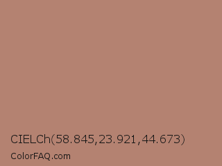 CIELCh 58.845,23.921,44.673 Color is a normal color and the nearest color is Light Taupe #b38b6d. Hex code #b48271 and RGB value is rgb(180,130,113). In RGB color space, this color is composed of 71% red, 51% green, 44% blue, In CMYK color space, this color is composed of 0% cyan, 28% magenta, 37% yellow , 29% black , In HSL color space, this color has a hue angle of 15° , 31% saturation and 57% lightness.