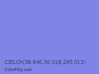 CIELCh 58.846,56.018,295.013 Color is a light blue color and the nearest color is Chetwode Blue #8581d9. Hex code #8084e7 and RGB value is rgb(128,132,231). In RGB color space, this color is composed of 50% red, 52% green, 91% blue, In CMYK color space, this color is composed of 45% cyan, 43% magenta, 0% yellow , 9% black , In HSL color space, this color has a hue angle of 238° , 68% saturation and 70% lightness.