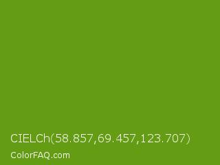 CIELCh 58.857,69.457,123.707 Color is a normal green color and the nearest color is Christi #67a712. Hex code #649d14 and RGB value is rgb(100,157,20). In RGB color space, this color is composed of 39% red, 62% green, 8% blue, In CMYK color space, this color is composed of 36% cyan, 0% magenta, 87% yellow , 38% black , In HSL color space, this color has a hue angle of 85° , 77% saturation and 35% lightness.