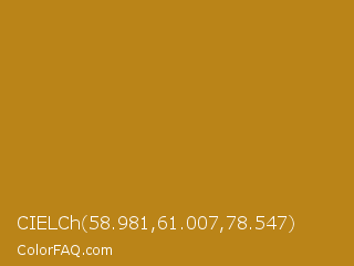 CIELCh 58.981,61.007,78.547 Color is a normal orange color and the nearest color is Dark Goldenrod #b8860b. Hex code #ba8418 and RGB value is rgb(186,132,24). In RGB color space, this color is composed of 73% red, 52% green, 9% blue, In CMYK color space, this color is composed of 0% cyan, 29% magenta, 87% yellow , 27% black , In HSL color space, this color has a hue angle of 40° , 77% saturation and 41% lightness.