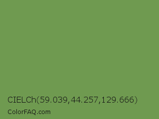 CIELCh 59.039,44.257,129.666 Color is a normal green color and the nearest color is Palm Leaf #6f9940. Hex code #6f9a50 and RGB value is rgb(111,154,80). In RGB color space, this color is composed of 44% red, 60% green, 31% blue, In CMYK color space, this color is composed of 28% cyan, 0% magenta, 48% yellow , 40% black , In HSL color space, this color has a hue angle of 95° , 32% saturation and 46% lightness.