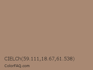 CIELCh 59.111,18.67,61.538 Color is a normal orange color and the nearest color is Sandal #aa8d6f. Hex code #a88872 and RGB value is rgb(168,136,114). In RGB color space, this color is composed of 66% red, 53% green, 45% blue, In CMYK color space, this color is composed of 0% cyan, 19% magenta, 32% yellow , 34% black , In HSL color space, this color has a hue angle of 24° , 24% saturation and 55% lightness.
