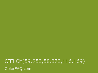 CIELCh 59.253,58.373,116.169 Color is a normal lime color and the nearest color is Wasabi #788a25. Hex code #7d9929 and RGB value is rgb(125,153,41). In RGB color space, this color is composed of 49% red, 60% green, 16% blue, In CMYK color space, this color is composed of 18% cyan, 0% magenta, 73% yellow , 40% black , In HSL color space, this color has a hue angle of 75° , 58% saturation and 38% lightness.