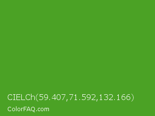 CIELCh 59.407,71.592,132.166 Color is a normal green color and the nearest color is Vida Loca #549019. Hex code #4ba225 and RGB value is rgb(75,162,37). In RGB color space, this color is composed of 29% red, 64% green, 15% blue, In CMYK color space, this color is composed of 54% cyan, 0% magenta, 77% yellow , 36% black , In HSL color space, this color has a hue angle of 102° , 63% saturation and 39% lightness.