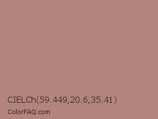 CIELCh 59.449,20.6,35.41 Color is a normal red color and the nearest color is Brandy Rose #bb8983. Hex code #b3847b and RGB value is rgb(179,132,123). In RGB color space, this color is composed of 70% red, 52% green, 48% blue, In CMYK color space, this color is composed of 0% cyan, 26% magenta, 31% yellow , 30% black , In HSL color space, this color has a hue angle of 10° , 27% saturation and 59% lightness.