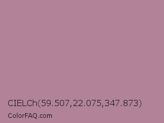 CIELCh 59.507,22.075,347.873 Color is a normal rose color and the nearest color is English Lavender #b48395. Hex code #b18298 and RGB value is rgb(177,130,152). In RGB color space, this color is composed of 69% red, 51% green, 60% blue, In CMYK color space, this color is composed of 0% cyan, 27% magenta, 14% yellow , 31% black , In HSL color space, this color has a hue angle of 332° , 23% saturation and 60% lightness.