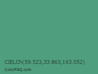 CIELCh 59.523,33.863,163.052 Color is a normal green color and the nearest color is Shiny Shamrock #5fa778. Hex code #4f9e7d and RGB value is rgb(79,158,125). In RGB color space, this color is composed of 31% red, 62% green, 49% blue, In CMYK color space, this color is composed of 50% cyan, 0% magenta, 21% yellow , 38% black , In HSL color space, this color has a hue angle of 155° , 33% saturation and 46% lightness.