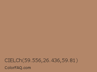 CIELCh 59.556,26.436,59.81 Color is a normal orange color and the nearest color is Light Taupe #b38b6d. Hex code #b38668 and RGB value is rgb(179,134,104). In RGB color space, this color is composed of 70% red, 53% green, 41% blue, In CMYK color space, this color is composed of 0% cyan, 25% magenta, 42% yellow , 30% black , In HSL color space, this color has a hue angle of 24° , 33% saturation and 55% lightness.
