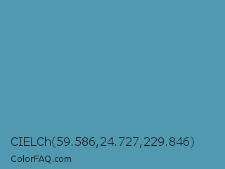 CIELCh 59.586,24.727,229.846 Color is a normal blue color and the nearest color is Hippie Blue #589aaf. Hex code #5199b0 and RGB value is rgb(81,153,176). In RGB color space, this color is composed of 32% red, 60% green, 69% blue, In CMYK color space, this color is composed of 54% cyan, 13% magenta, 0% yellow , 31% black , In HSL color space, this color has a hue angle of 195° , 38% saturation and 50% lightness.