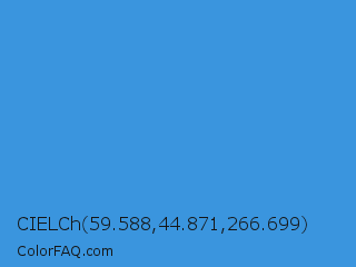 CIELCh 59.588,44.871,266.699 Color is a normal blue color and the nearest color is Tufts Blue #3e8ede. Hex code #3a95de and RGB value is rgb(58,149,222). In RGB color space, this color is composed of 23% red, 58% green, 87% blue, In CMYK color space, this color is composed of 74% cyan, 33% magenta, 0% yellow , 13% black , In HSL color space, this color has a hue angle of 207° , 71% saturation and 55% lightness.