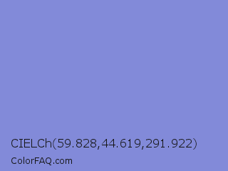 CIELCh 59.828,44.619,291.922 Color Space Converter