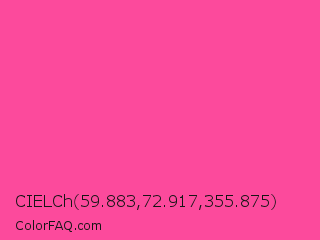 CIELCh 59.883,72.917,355.875 Color is a light rose color and the nearest color is Rose Bonbon #f9429e. Hex code #fc4a9c and RGB value is rgb(252,74,156). In RGB color space, this color is composed of 99% red, 29% green, 61% blue, In CMYK color space, this color is composed of 0% cyan, 71% magenta, 38% yellow , 1% black , In HSL color space, this color has a hue angle of 332° , 97% saturation and 64% lightness.