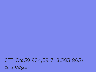 CIELCh 59.924,59.713,293.865 Color is a light blue color and the nearest color is Chetwode Blue #8581d9. Hex code #7d87f1 and RGB value is rgb(125,135,241). In RGB color space, this color is composed of 49% red, 53% green, 95% blue, In CMYK color space, this color is composed of 48% cyan, 44% magenta, 0% yellow , 5% black , In HSL color space, this color has a hue angle of 235° , 81% saturation and 72% lightness.