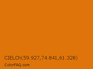 CIELCh 59.927,74.841,61.328 Color is a normal orange color and the nearest color is Christine #e7730a. Hex code #de740a and RGB value is rgb(222,116,10). In RGB color space, this color is composed of 87% red, 45% green, 4% blue, In CMYK color space, this color is composed of 0% cyan, 48% magenta, 95% yellow , 13% black , In HSL color space, this color has a hue angle of 30° , 91% saturation and 45% lightness.