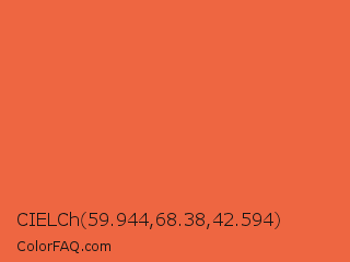 CIELCh 59.944,68.38,42.594 Color is a normal red color and the nearest color is Orange Soda #fa5b3d. Hex code #ee6641 and RGB value is rgb(238,102,65). In RGB color space, this color is composed of 93% red, 40% green, 25% blue, In CMYK color space, this color is composed of 0% cyan, 57% magenta, 73% yellow , 7% black , In HSL color space, this color has a hue angle of 13° , 84% saturation and 59% lightness.