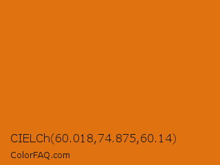CIELCh 60.018,74.875,60.14 Color is a normal orange color and the nearest color is Christine #e7730a. Hex code #e0730f and RGB value is rgb(224,115,15). In RGB color space, this color is composed of 88% red, 45% green, 6% blue, In CMYK color space, this color is composed of 0% cyan, 49% magenta, 93% yellow , 12% black , In HSL color space, this color has a hue angle of 29° , 87% saturation and 47% lightness.