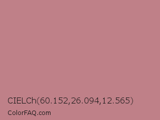 CIELCh 60.152,26.094,12.565 Color is a light red color and the nearest color is Old Rose #c08081. Hex code #bf8088 and RGB value is rgb(191,128,136). In RGB color space, this color is composed of 75% red, 50% green, 53% blue, In CMYK color space, this color is composed of 0% cyan, 33% magenta, 29% yellow , 25% black , In HSL color space, this color has a hue angle of 352° , 33% saturation and 63% lightness.