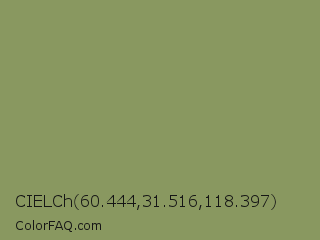 CIELCh 60.444,31.516,118.397 Color is a normal lime color and the nearest color is Moss Green #8a9a5b. Hex code #899860 and RGB value is rgb(137,152,96). In RGB color space, this color is composed of 54% red, 60% green, 38% blue, In CMYK color space, this color is composed of 10% cyan, 0% magenta, 37% yellow , 40% black , In HSL color space, this color has a hue angle of 76° , 23% saturation and 49% lightness.