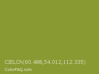 CIELCh 60.488,54.012,112.335 Color is a normal yellow color and the nearest color is Sycamore #908d39. Hex code #899a33 and RGB value is rgb(137,154,51). In RGB color space, this color is composed of 54% red, 60% green, 20% blue, In CMYK color space, this color is composed of 11% cyan, 0% magenta, 67% yellow , 40% black , In HSL color space, this color has a hue angle of 70° , 50% saturation and 40% lightness.