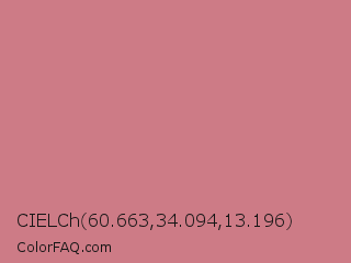 CIELCh 60.663,34.094,13.196 Color is a light red color and the nearest color is New York Pink #d7837f. Hex code #cd7b86 and RGB value is rgb(205,123,134). In RGB color space, this color is composed of 80% red, 48% green, 53% blue, In CMYK color space, this color is composed of 0% cyan, 40% magenta, 35% yellow , 20% black , In HSL color space, this color has a hue angle of 352° , 45% saturation and 64% lightness.