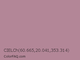 CIELCh 60.665,20.041,353.314 Color is a light rose color and the nearest color is English Lavender #b48395. Hex code #b38697 and RGB value is rgb(179,134,151). In RGB color space, this color is composed of 70% red, 53% green, 59% blue, In CMYK color space, this color is composed of 0% cyan, 25% magenta, 16% yellow , 30% black , In HSL color space, this color has a hue angle of 337° , 23% saturation and 61% lightness.