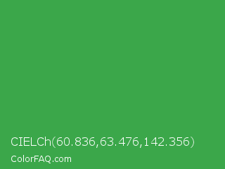 CIELCh 60.836,63.476,142.356 Color is a normal green color and the nearest color is Chateau Green #40a860. Hex code #3ba74a and RGB value is rgb(59,167,74). In RGB color space, this color is composed of 23% red, 65% green, 29% blue, In CMYK color space, this color is composed of 65% cyan, 0% magenta, 56% yellow , 35% black , In HSL color space, this color has a hue angle of 128° , 48% saturation and 44% lightness.
