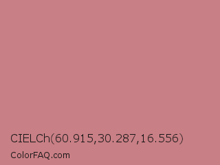CIELCh 60.915,30.287,16.556 Color is a light red color and the nearest color is Old Rose #c08081. Hex code #c87f85 and RGB value is rgb(200,127,133). In RGB color space, this color is composed of 78% red, 50% green, 52% blue, In CMYK color space, this color is composed of 0% cyan, 37% magenta, 34% yellow , 22% black , In HSL color space, this color has a hue angle of 355° , 40% saturation and 64% lightness.
