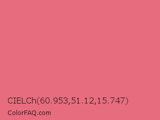 CIELCh 60.953,51.12,15.747 Color is a light red color and the nearest color is Candy Pink #e4717a. Hex code #e76c7d and RGB value is rgb(231,108,125). In RGB color space, this color is composed of 91% red, 42% green, 49% blue, In CMYK color space, this color is composed of 0% cyan, 53% magenta, 46% yellow , 9% black , In HSL color space, this color has a hue angle of 352° , 72% saturation and 66% lightness.