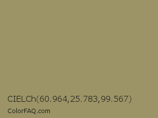 CIELCh 60.964,25.783,99.567 Color is a normal yellow color and the nearest color is Gurkha #9a9577. Hex code #9c9466 and RGB value is rgb(156,148,102). In RGB color space, this color is composed of 61% red, 58% green, 40% blue, In CMYK color space, this color is composed of 0% cyan, 5% magenta, 35% yellow , 39% black , In HSL color space, this color has a hue angle of 51° , 21% saturation and 51% lightness.
