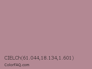 CIELCh 61.044,18.134,1.601 Color is a light red color and the nearest color is English Lavender #b48395. Hex code #b38893 and RGB value is rgb(179,136,147). In RGB color space, this color is composed of 70% red, 53% green, 58% blue, In CMYK color space, this color is composed of 0% cyan, 24% magenta, 18% yellow , 30% black , In HSL color space, this color has a hue angle of 345° , 22% saturation and 62% lightness.