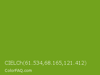 CIELCh 61.534,68.165,121.412 Color is a normal green color and the nearest color is Christi #67a712. Hex code #72a31d and RGB value is rgb(114,163,29). In RGB color space, this color is composed of 45% red, 64% green, 11% blue, In CMYK color space, this color is composed of 30% cyan, 0% magenta, 82% yellow , 36% black , In HSL color space, this color has a hue angle of 82° , 70% saturation and 38% lightness.