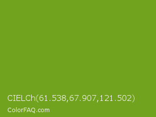 CIELCh 61.538,67.907,121.502 Color is a normal green color and the nearest color is Christi #67a712. Hex code #72a31e and RGB value is rgb(114,163,30). In RGB color space, this color is composed of 45% red, 64% green, 12% blue, In CMYK color space, this color is composed of 30% cyan, 0% magenta, 82% yellow , 36% black , In HSL color space, this color has a hue angle of 82° , 69% saturation and 38% lightness.