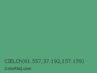 CIELCh 61.557,37.192,157.159 Color is a normal green color and the nearest color is Shiny Shamrock #5fa778. Hex code #55a47a and RGB value is rgb(85,164,122). In RGB color space, this color is composed of 33% red, 64% green, 48% blue, In CMYK color space, this color is composed of 48% cyan, 0% magenta, 26% yellow , 36% black , In HSL color space, this color has a hue angle of 148° , 32% saturation and 49% lightness.