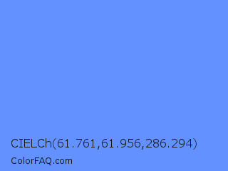 CIELCh 61.761,61.956,286.294 Color is a light blue color and the nearest color is Cornflower Blue #6495ed. Hex code #6391ff and RGB value is rgb(99,145,255). In RGB color space, this color is composed of 39% red, 57% green, 100% blue, In CMYK color space, this color is composed of 61% cyan, 43% magenta, 0% yellow , 0% black , In HSL color space, this color has a hue angle of 222° , 100% saturation and 69% lightness.