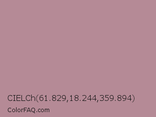 CIELCh 61.829,18.244,359.894 Color is a light rose color and the nearest color is English Lavender #b48395. Hex code #b58a96 and RGB value is rgb(181,138,150). In RGB color space, this color is composed of 71% red, 54% green, 59% blue, In CMYK color space, this color is composed of 0% cyan, 24% magenta, 17% yellow , 29% black , In HSL color space, this color has a hue angle of 343° , 23% saturation and 63% lightness.