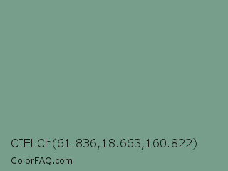 CIELCh 61.836,18.663,160.822 Color is a normal green color and the nearest color is Oxley #779e86. Hex code #779e8a and RGB value is rgb(119,158,138). In RGB color space, this color is composed of 47% red, 62% green, 54% blue, In CMYK color space, this color is composed of 25% cyan, 0% magenta, 13% yellow , 38% black , In HSL color space, this color has a hue angle of 149° , 17% saturation and 54% lightness.