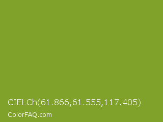 CIELCh 61.866,61.555,117.405 Color is a normal lime color and the nearest color is Sushi #87ab39. Hex code #80a12a and RGB value is rgb(128,161,42). In RGB color space, this color is composed of 50% red, 63% green, 16% blue, In CMYK color space, this color is composed of 20% cyan, 0% magenta, 74% yellow , 37% black , In HSL color space, this color has a hue angle of 77° , 59% saturation and 40% lightness.