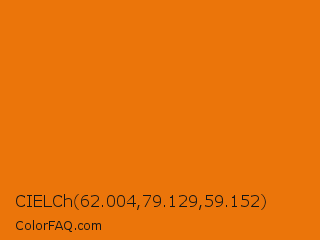 CIELCh 62.004,79.129,59.152 Color is a normal orange color and the nearest color is Christine #e7730a. Hex code #eb750a and RGB value is rgb(235,117,10). In RGB color space, this color is composed of 92% red, 46% green, 4% blue, In CMYK color space, this color is composed of 0% cyan, 50% magenta, 96% yellow , 8% black , In HSL color space, this color has a hue angle of 29° , 92% saturation and 48% lightness.