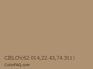 CIELCh 62.014,22.43,74.311 Color is a normal orange color and the nearest color is Sandal #aa8d6f. Hex code #ae9170 and RGB value is rgb(174,145,112). In RGB color space, this color is composed of 68% red, 57% green, 44% blue, In CMYK color space, this color is composed of 0% cyan, 17% magenta, 36% yellow , 32% black , In HSL color space, this color has a hue angle of 32° , 28% saturation and 56% lightness.
