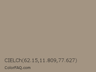 CIELCh 62.15,11.809,77.627 Color is a normal orange color and the nearest color is Grullo #a99a86. Hex code #a39482 and RGB value is rgb(163,148,130). In RGB color space, this color is composed of 64% red, 58% green, 51% blue, In CMYK color space, this color is composed of 0% cyan, 9% magenta, 20% yellow , 36% black , In HSL color space, this color has a hue angle of 33° , 15% saturation and 57% lightness.