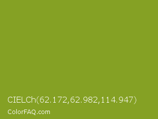 CIELCh 62.172,62.982,114.947 Color is a normal lime color and the nearest color is Sushi #87ab39. Hex code #85a124 and RGB value is rgb(133,161,36). In RGB color space, this color is composed of 52% red, 63% green, 14% blue, In CMYK color space, this color is composed of 17% cyan, 0% magenta, 78% yellow , 37% black , In HSL color space, this color has a hue angle of 73° , 63% saturation and 39% lightness.