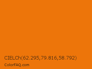 CIELCh 62.295,79.816,58.792 Color is a normal orange color and the nearest color is Christine #e7730a. Hex code #ed750a and RGB value is rgb(237,117,10). In RGB color space, this color is composed of 93% red, 46% green, 4% blue, In CMYK color space, this color is composed of 0% cyan, 51% magenta, 96% yellow , 7% black , In HSL color space, this color has a hue angle of 28° , 92% saturation and 48% lightness.