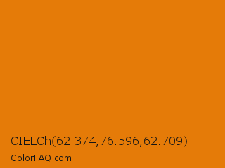 CIELCh 62.374,76.596,62.709 Color is a normal orange color and the nearest color is Tahiti Gold #e97c07. Hex code #e57b08 and RGB value is rgb(229,123,8). In RGB color space, this color is composed of 90% red, 48% green, 3% blue, In CMYK color space, this color is composed of 0% cyan, 46% magenta, 97% yellow , 10% black , In HSL color space, this color has a hue angle of 31° , 93% saturation and 46% lightness.