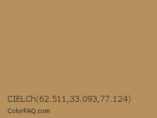 CIELCh 62.511,33.093,77.124 Color is a normal orange color and the nearest color is Muddy Waters #b78e5c. Hex code #b6915e and RGB value is rgb(182,145,94). In RGB color space, this color is composed of 71% red, 57% green, 37% blue, In CMYK color space, this color is composed of 0% cyan, 20% magenta, 48% yellow , 29% black , In HSL color space, this color has a hue angle of 35° , 38% saturation and 54% lightness.