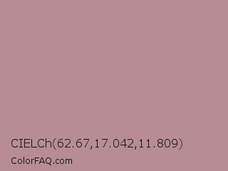 CIELCh 62.67,17.042,11.809 Color is a light red color and the nearest color is Rosy Brown #bc8f8f. Hex code #b78d92 and RGB value is rgb(183,141,146). In RGB color space, this color is composed of 72% red, 55% green, 57% blue, In CMYK color space, this color is composed of 0% cyan, 23% magenta, 20% yellow , 28% black , In HSL color space, this color has a hue angle of 353° , 23% saturation and 64% lightness.