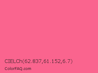 CIELCh 62.837,61.152,6.7 Color is a light rose color and the nearest color is Light Crimson #f56991. Hex code #fa648e and RGB value is rgb(250,100,142). In RGB color space, this color is composed of 98% red, 39% green, 56% blue, In CMYK color space, this color is composed of 0% cyan, 60% magenta, 43% yellow , 2% black , In HSL color space, this color has a hue angle of 343° , 94% saturation and 69% lightness.